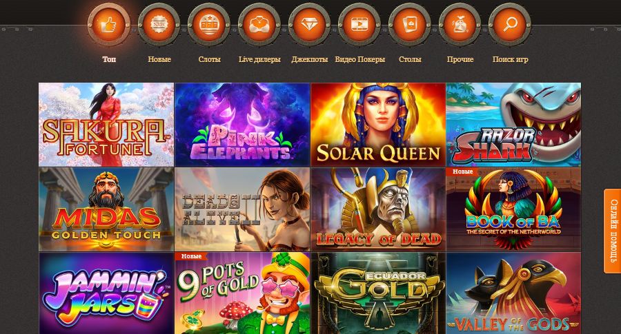 На сайте онлайн казино представлен игровой зал с множеством игровых автоматов, видеослотов, карточных игр и другого контента, который порадует игроков яркими символами и увлекательными прокрутами.